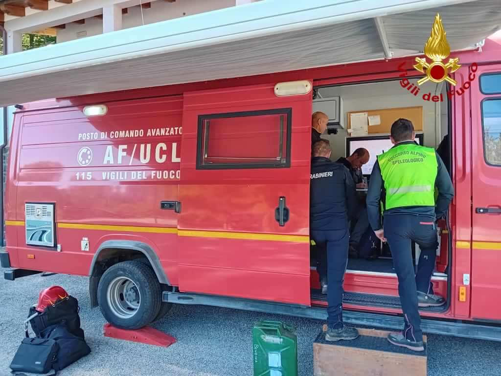 Inviati anche i cinofili e l’unità di comando locale con i personale specializzato in topografia che pianifica e coordina le operazioni di ricerca.