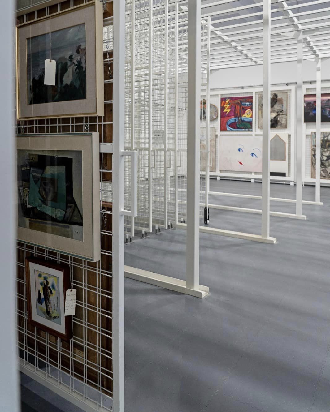 Gli ambienti di deposito al primo piano hanno una superficie di 650 metri quadrati circa distribuiti in nove sale. Nelle due sale più ampie sono state realizzate delle imponenti strutture metalliche autoportanti. In parte già attrezzate con grandi pannelli grigliati a scorrimento, bifacciali, che garantiscono l’appendimento dei dipinti su entrambi i lati. Nelle altre sale sono state previste ulteriori attrezzature espositive e conservative. Non solo griglie, ma anche cassettiere e scaffalature per collocare manufatti eterogenei. Completano gli ambienti di deposito ulteriori spazi destinati alle funzioni di ufficio e di laboratorio per interventi di manutenzione.