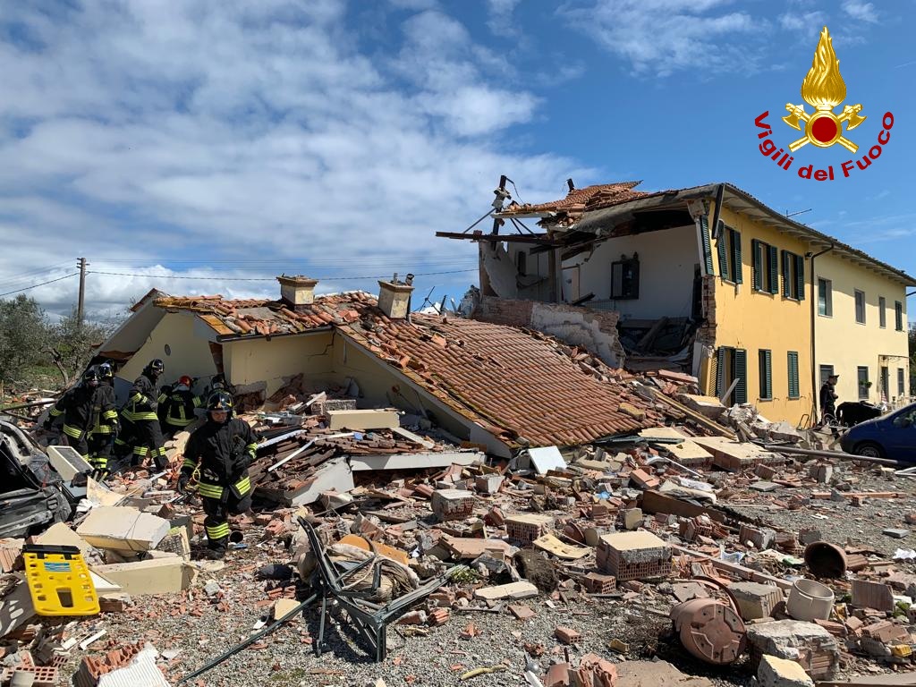 Scoppia una bombola di gas e crolla una palazzina sabato 15 aprile intorno alle 11.30 in via del Marginone, nel Comune di Montecarlo, provincia di Lucca.