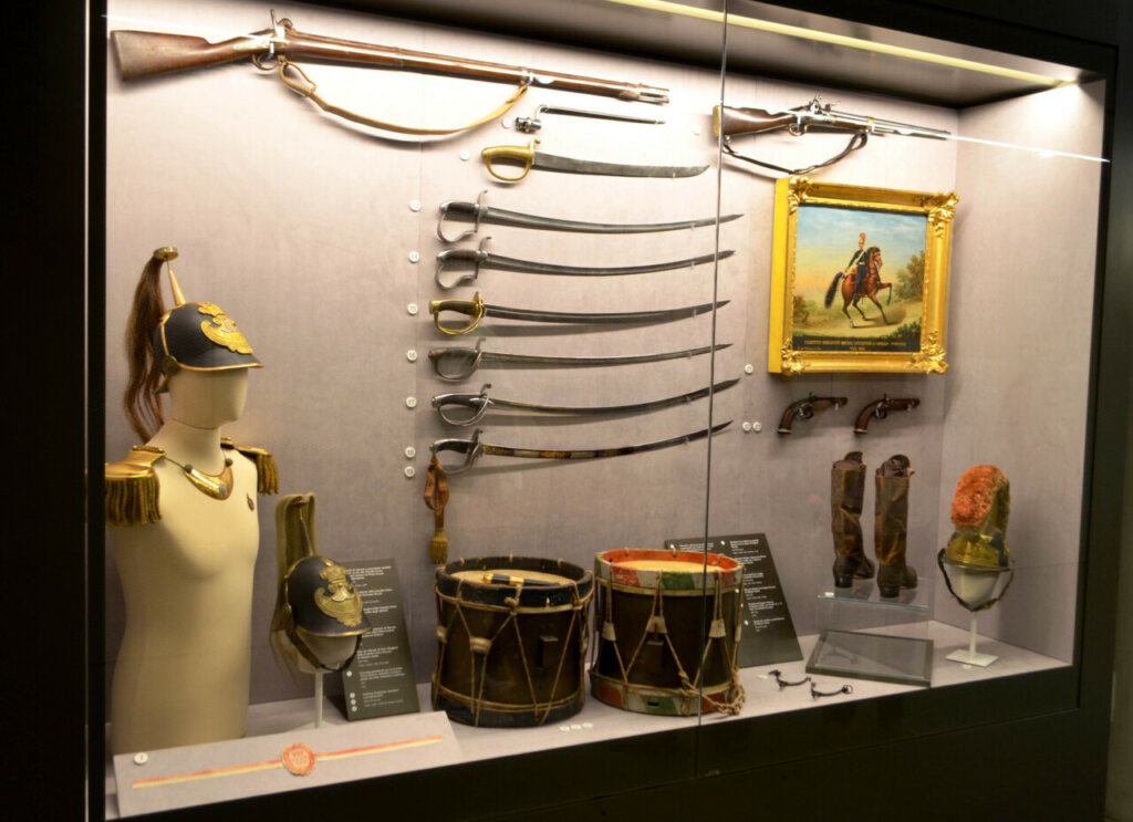 In mostra: elmi cesellati appartenuti alla guardia civica, spalline, complementi d’uniforme e sciabole di rara bellezza che con i loro decori rappresentano le capacità artistiche degli armaioli toscani del XIX secolo. Accanto a questo, armi come quelle con cui i toscani combatterono a Curtatone e Montanara nonché la famosa medaglia che decorava il petto dei reduci di quella battaglia.