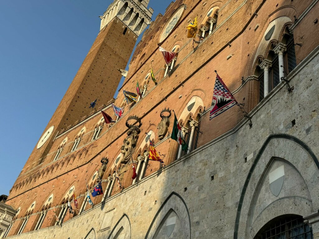 Al secondo piano di palazzo comunale sono state esposte le bandiere delle Contrade non estratte, nell’ordine: Torre, Pantera, Tartuca, Drago, Bruco, Giraffa, Aquila.
