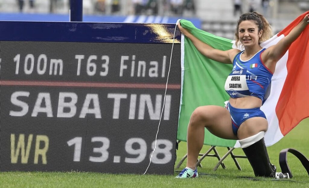 Ambra Sabatini ha conquistato l’oro ai Giochi Paralimpici Tokyo 2020 nei 100 metri di categoria T63. In un podio tutto azzurro: con Ambra Sabatini, Martina Caironi e Monica Graziana Contrafatto. Sabatini ha stabilito a Tokyo il record mondiale con 14″11, primato migliorato ancora in occasione dei Campionati mondiali di Parigi del 2023, con 13″98.