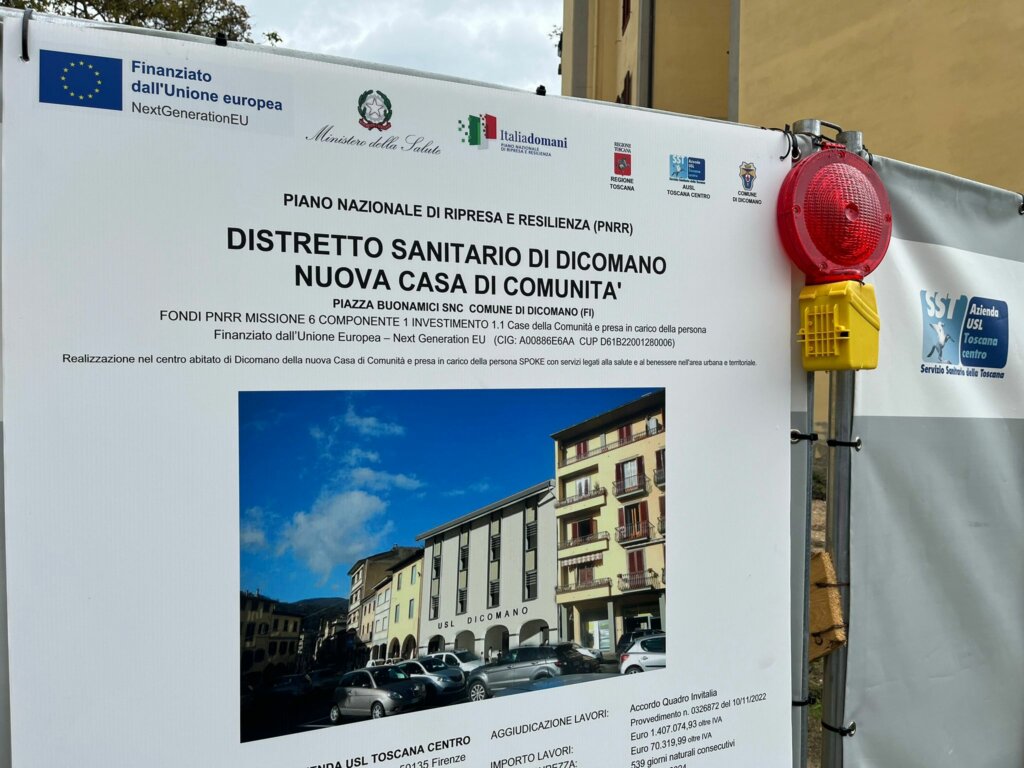 Casa di Comunità a Dicomano, primo cantiere delle cinque Case di Comunità già finanziate della nuova sanità territoriale nel Mugello inaugurato lunedì 22 aprile in piazza Buonamici a Dicomano