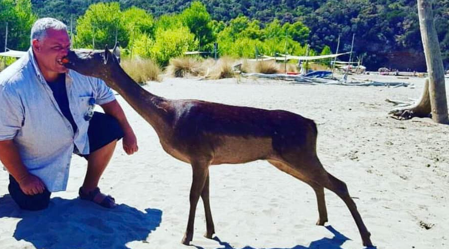 Un cerbiatto preso a calci da bambini a Cala di Forno, meraviglioso tratto costiero nel territorio di Magliano in Toscana, provincia di Grosseto.