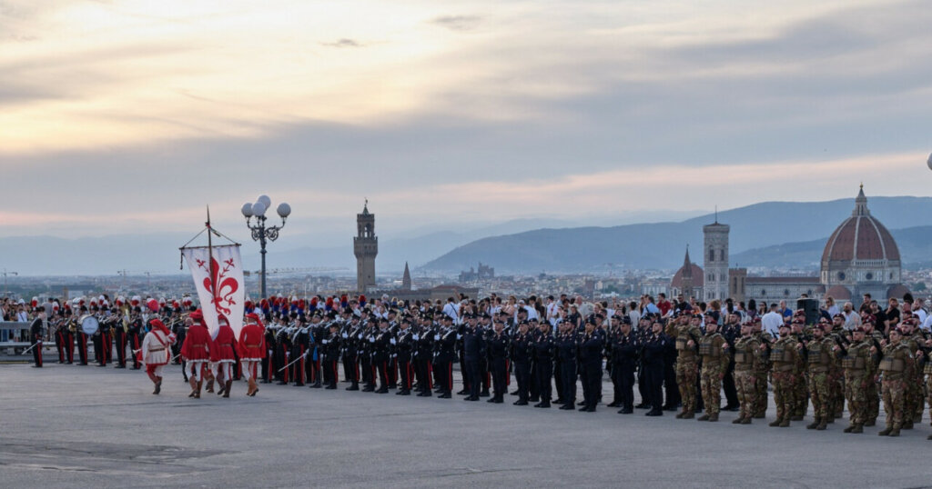 Dopo gli onori ai gonfaloni della Regione Toscana e della Città Metropolitana di Firenze, al medagliere del Nastro Azzurro e al gonfalone della Città di Firenze (decorato di medaglia d’oro al valor militare), sulle note del canto degli Italiani ha preso posto, nello schieramento, la bandiera di guerra del 6° Battaglione Carabinieri Toscana. Il reparto è stato poi passato in rassegna dal comandante della Scuola Marescialli e Brigadieri, generale di divisione Pietro Oresta, e dal comandante della Legione Toscana, generale di brigata Lorenzo Falferi, e a seguire è stata data lettura del messaggio augurale del presidente della Repubblica e dell’ordine del giorno del Comandante Generale dell’Arma, generale di corpo d’armata Teo Luzi.