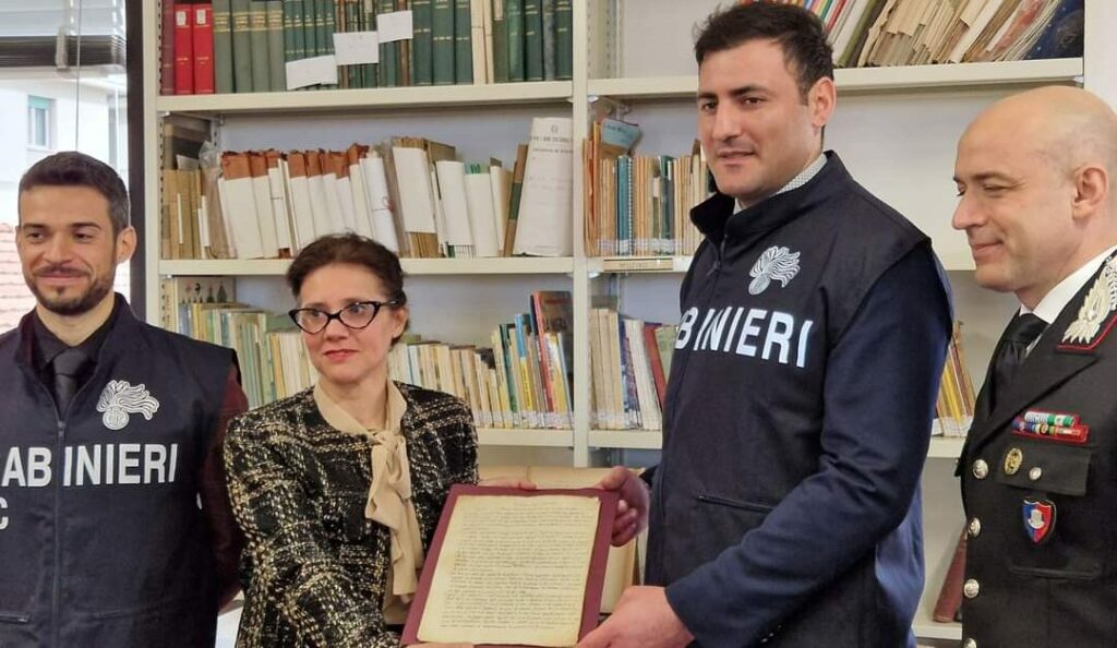 Sono stati i carabinieri del Nucleo per la Tutela del Patrimonio Culturale di Venezia, coordinati dalla procura di Verona, che, con i funzionari della Direzione Generale Archivi e i relativi uffici periferici del Ministero della Cultura, nel luglio 2022 hanno intercettato il bene in una trattativa privata e quindi proceduto al sequestro, quale bene culturale inalienabile dal patrimonio dello Stato.