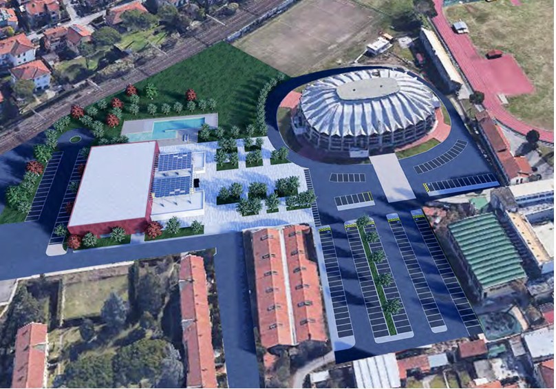 L’intervento vedrà la costruzione di un nuovo edificio in un’area vicina a quella dell’attuale piscina, accanto al Palazzetto dello Sport.