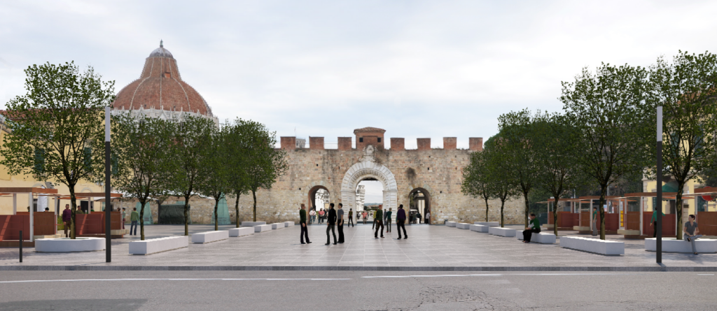 L’area del mercato così riqualificata vedrà una nuova localizzazione dei punti di vendita lungo il percorso turistico, con banchi completamente rinnovati, così come già previsto dal Piano del Commercio. L’ingresso dalla Porta Nuova verrà ridisegnato, avrà finalmente la configurazione di una vera piazza, luogo di incontro che introduce al complesso monumentale di Piazza dei Miracoli.”