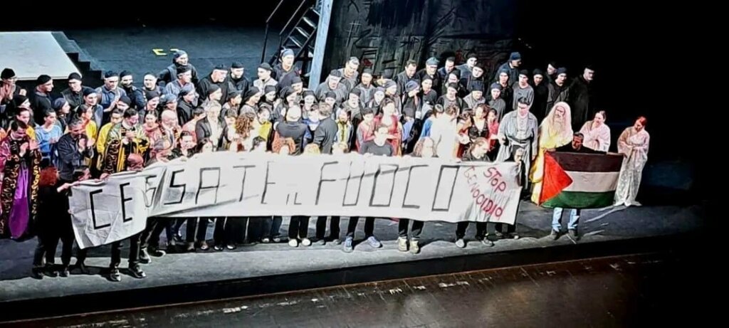 ‘Stop genocidio‘ dopo Turandot, è polemica al teatro Goldoni di Livorno dove venerdì 26 aprile al termine di Turandot di Puccini è stato esposto sul palco uno striscione con la scritta ‘Cessate il fuoco. Stop genocidio’ al momento dei saluti e degli applausi finali.