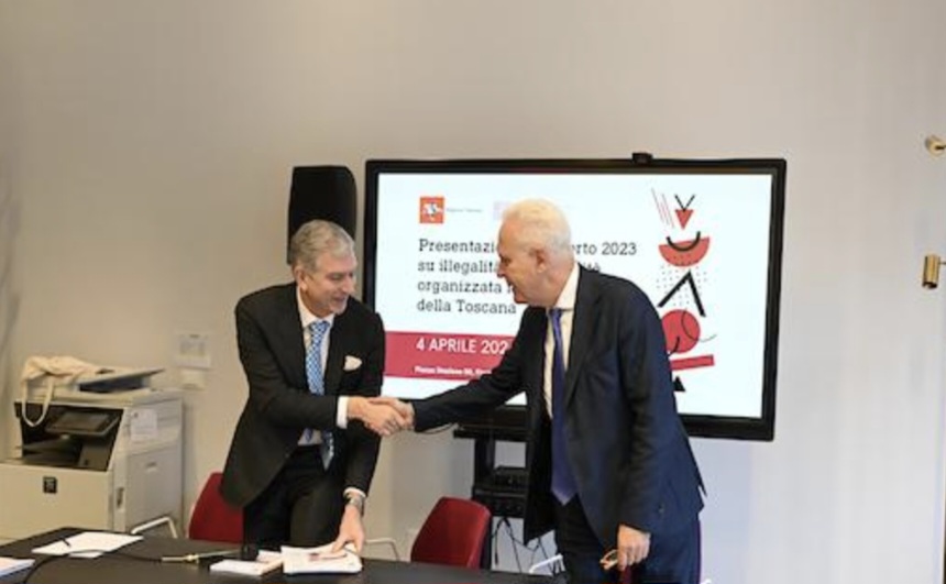 Rapporto 2023 su illegalità e criminalità organizzata nell’economia della Toscana redatto da Irpet, l’Istituto Regionale per la Programmazione Economica della Toscana presentato a Firenze nella Palazzina reale della stazione di Santa Maria Novella. Con Eugenio Giani, presidente Regione Toscana, l’assessore regionale alla legalità Stefano Ciuoffo, il procuratore della Repubblica di Firenze Filippo Spiezia.