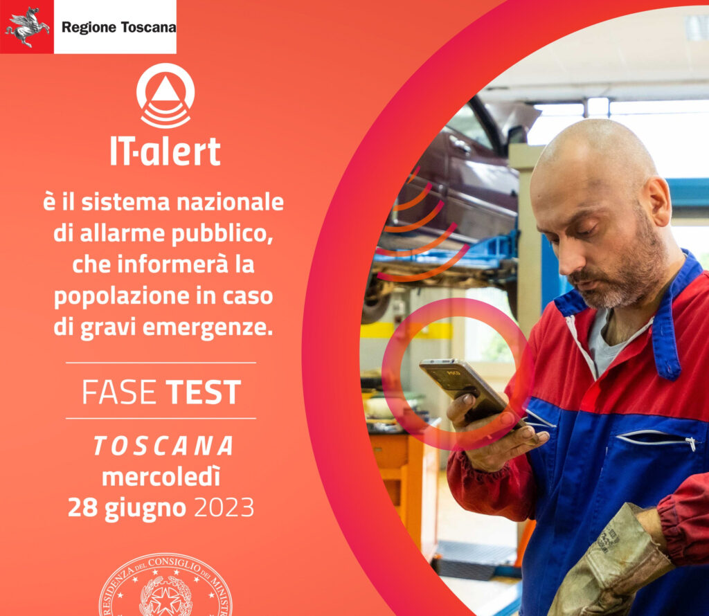 Mercoledì 28 giugno 2023 intorno alle 12.00 parte in Toscana il test del sistema IT-Alert, il Sistema Nazionale di allarme pubblico che informerà la popolazione in caso di gravi emergenze.