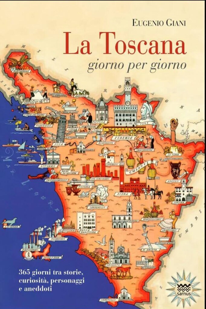 FIRENZE – È stato presentato con grande entusiasmo nelle scorse settimane il nuovo volume firmato dal presidente della Regione Toscana Eugenio Giani, dal titolo La Toscana giorno per giorno, una pubblicazione che promette 365 pillole di storia, aneddoti e curiosità sulla nostra regione, accompagnate da una colorata mappa illustrata. Ma mentre il libro vuole raccontare l’anima della Toscana, alcuni elementi della mappa sollevano più di una perplessità.