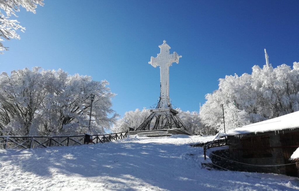 Prudenza e catene o gomme termiche obbligatorie sulle strade per godersi appieno la bellezza della neve”.