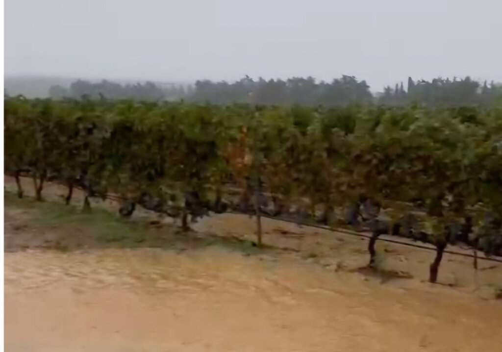 Il punto di Coldiretti Livorno martedì 24 settembre: “Sopralluogo da parte dei viticoltori della zona di Bolgheri interessata la scorsa notte dalle violenti ed incessanti piogge (oltre 200 mm in 24 ore) che hanno causato l’esondazione di canali e fossi allagando case, strade  e terreni agricoli. La quantità di acqua scesa in brevissimo tempo è stata tale da mandare in tilt il sistema del reticolo idrico minore provocandone il collasso. La furia dell’acqua mista al fango ha divelto anche alcune vigne. Tra gli areali più colpiti ci sono proprio quelli dell’areale della Doc tra la Bolgherese e la via Aurelia nel Comune di Castagneto Carducci”.