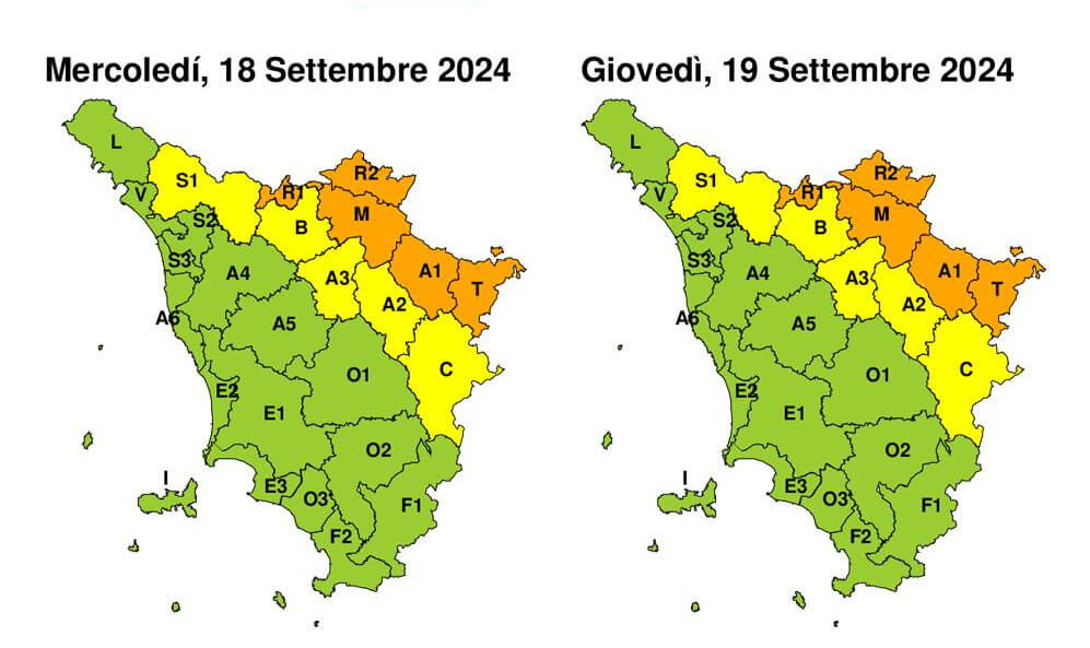 Nuova allerta arancione Toscana. Emessa dalla sala operativa Regione Toscana per rischio idrogeologico sulla Toscana orientale dalle 18 di mercoledì 18 settembre fino alle 18 di giovedì 19 settembre.