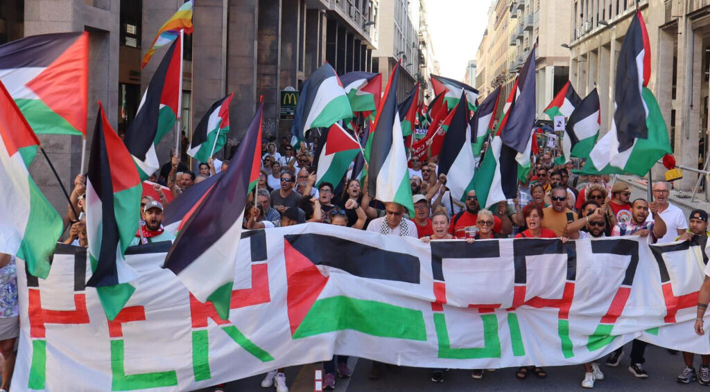 Significa dire basta al genocidio in Palestina e pretendere la fine immediata dell’assedio, dell’occupazione, delle forniture militari, del commercio con Israele.