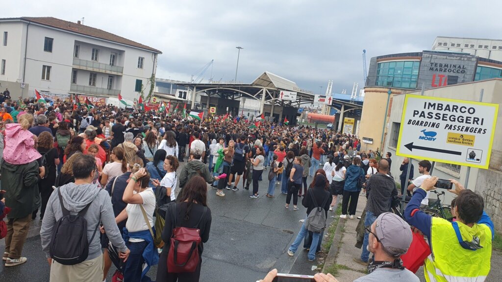 LIVORNO – Dalle 6 di questa mattina (22 settembre) il varco Valessini, uno degli accessi doganali del porto di Livorno, è stato presidiato da centinaia di manifestanti che hanno rallentato e bloccato i flussi in entrata e in uscita di mezzi, auto, pullman e tir.